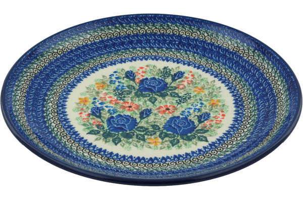 This polish pottery plate (item number H1144I) is made by talented artisans from Poland. It is 1.4" high and measures 10.5" by 10.5". The weight of this plate is 2.19 lbs. The price of this plate is $157.95 and if your total is over $99 you will get FREE SHIPPING.
