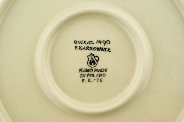 This is Polish Pottery Unikat (Signature) plate, which means that it has been hand painted with both sponges and brushes and it is signed by the artist who painted it. Unikat pieces are the most involving works of art. Larger Unikat items take a few hours of very careful work to finish.