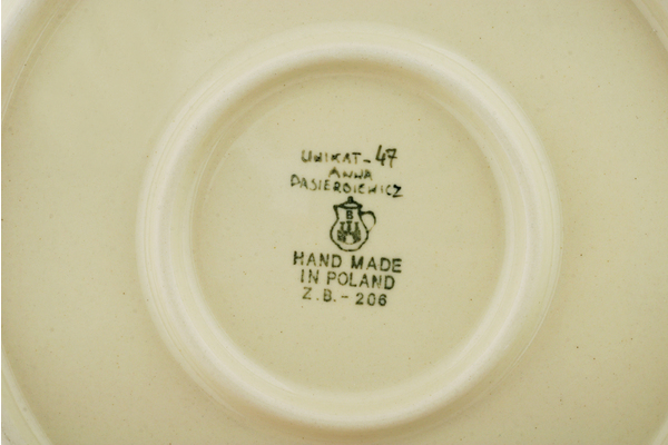 This is Polish Pottery Unikat (Signature) plate, which means that it has been hand painted with both sponges and brushes and it is signed by the artist who painted it. Unikat pieces are the most involving works of art. Larger Unikat items take a few hours of very careful work to finish.