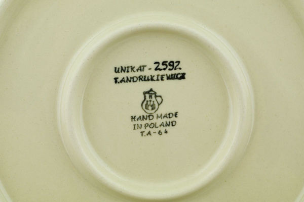 This is Polish Pottery Unikat (Signature) plate, which means that it has been hand painted with both sponges and brushes and it is signed by the artist who painted it. Unikat pieces are the most involving works of art. Larger Unikat items take a few hours of very careful work to finish.