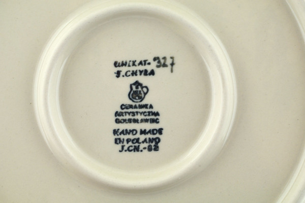 This is Polish Pottery Unikat (Signature) plate, which means that it has been hand painted with both sponges and brushes and it is signed by the artist who painted it. Unikat pieces are the most involving works of art. Larger Unikat items take a few hours of very careful work to finish.