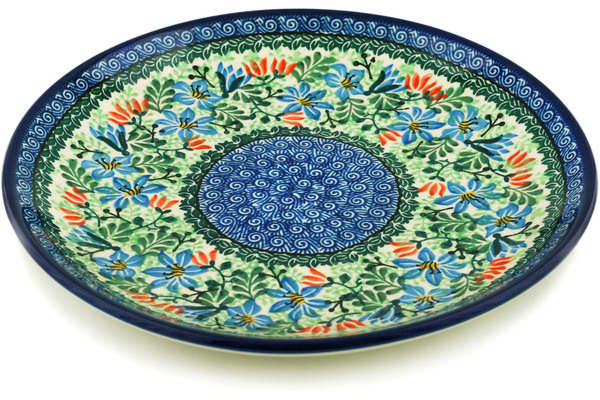 • Polish Pottery Plate 11" Blue Happy Fields UNIKAT