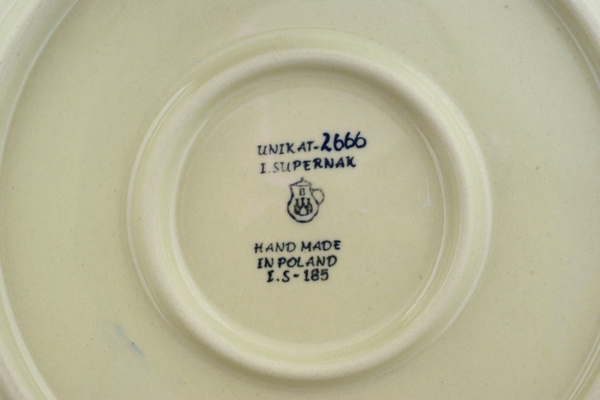 This is Polish Pottery Unikat (Signature) plate, which means that it has been hand painted with both sponges and brushes and it is signed by the artist who painted it. Unikat pieces are the most involving works of art. Larger Unikat items take a few hours of very careful work to finish.