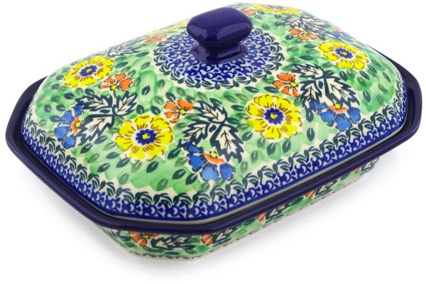 This polish pottery dish with cover (item number H2459B)