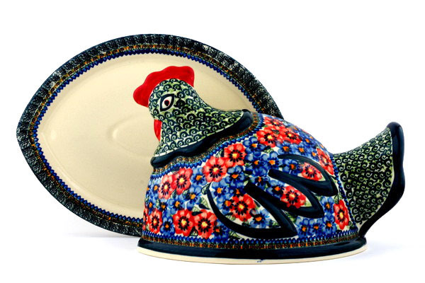 This Polish pottery dish with hen cover is currently out of stock in our Texas warehouse. However, we can special order it from Boleslawiec if you're willing to wait 6-12 months.
