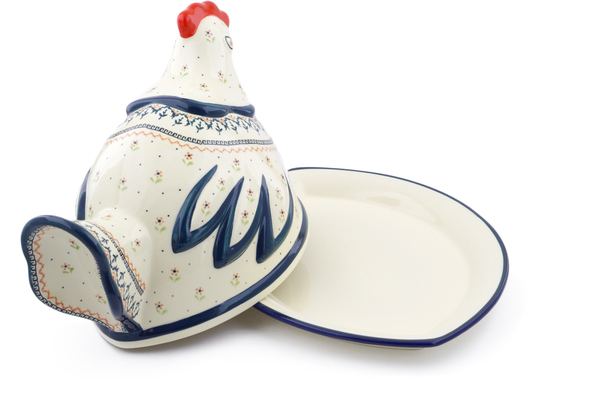 This polish pottery dish with hen cover (item number H1468J)