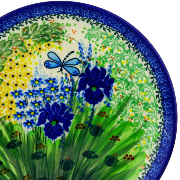 This polish pottery pasta bowl (item number H3019C) is made by talented artisans from Poland. It is 1.8" high and measures 9.5" by 9.5". It holds 12 ounces of fluid. The weight of this pasta bowl is 1.5 lbs.