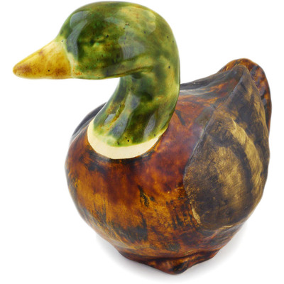 This ceramic duck figurine (item number H1706M) is made by talented artisans from Poland. It is 7.3" high and measures 4.6" by 7.7". The weight of this duck figurine is 1.18 lbs.