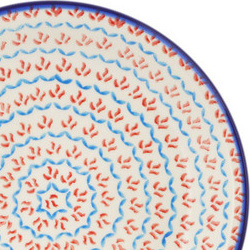 This polish pottery plate (item number H8085L) is made by talented artisans from Poland. It is 1" high and measures 9.8" by 9.8". It holds 15 ounces of fluid. The weight of this plate is 1.46 lbs.