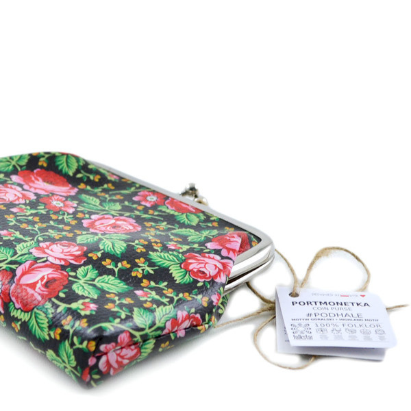 This textile purse (item number H2305M) is made by talented artisans from Poland. It is 0.8" high and measures 4.1" by 7.7". The weight of this purse is 0.31 lbs.
