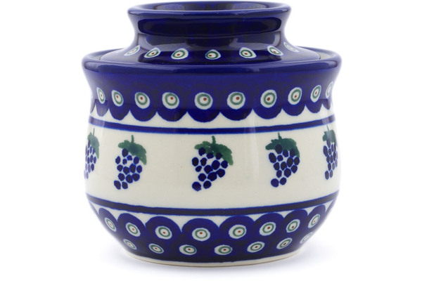 This polish pottery butter dish (item number H3642H) is made by talented artisans from Poland. It is 4.3" high and measures 4.5" by 4.5". The weight of this butter dish is 1.38 lbs. The price of this butter dish is $113.99 and if your total is over $99 you will get FREE SHIPPING.