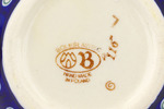 A: This butter dish / butter bell is a container used to maintain the freshness and spreadable consistency of butter without refrigeration. This late 19th century French-designed pottery crock has two parts: a base that holds water, and a cup to hold the packed butter which also serves as a lid. The cup containing butter is placed into the base, where water creates an airtight seal that keeps the air (and thus oxygen) away from the butter so that refrigeration is not needed, and the butter can be u