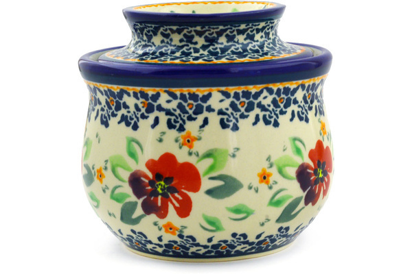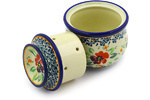 A: This butter dish / butter bell is a container used to maintain the freshness and spreadable consistency of butter without refrigeration. This late 19th century French-designed pottery crock has two parts: a base that holds water, and a cup to hold the packed butter which also serves as a lid. The cup containing butter is placed into the base, where water creates an airtight seal that keeps the air (and thus oxygen) away from the butter so that refrigeration is not needed, and the butter can be u