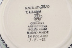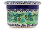 A: This late pottery crock has two parts: a base that holds water, and a cup to hold the packed butter which also serves as a lid. The cup containing butter is placed into the base, where water creates an airtight seal that keeps the air (and thus oxygen) away from the butter so that refrigeration is not needed, and the butter can be used in its soft form. This method will keep butter for around a month provided it is kept at temperatures below 80 °F (27 °C) and the water is changed regularly.