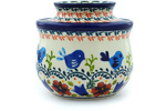 A: This butter dish / butter bell is a container used to maintain the freshness and spreadable consistency of butter without refrigeration. This late 19th century French-designed pottery crock has two parts: a base that holds water, and a cup to hold the packed butter which also serves as a lid. The cup containing butter is placed into the base, where water creates an airtight seal that keeps the air (and thus oxygen) away from the butter so that refrigeration is not needed, and the butter can be u
