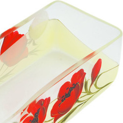 This glass bowl (item number H4246M) is made by talented artisans from Poland. It is 3.4" high and measures 4.7" by 10.2". The weight of this bowl is 3.46 lbs.