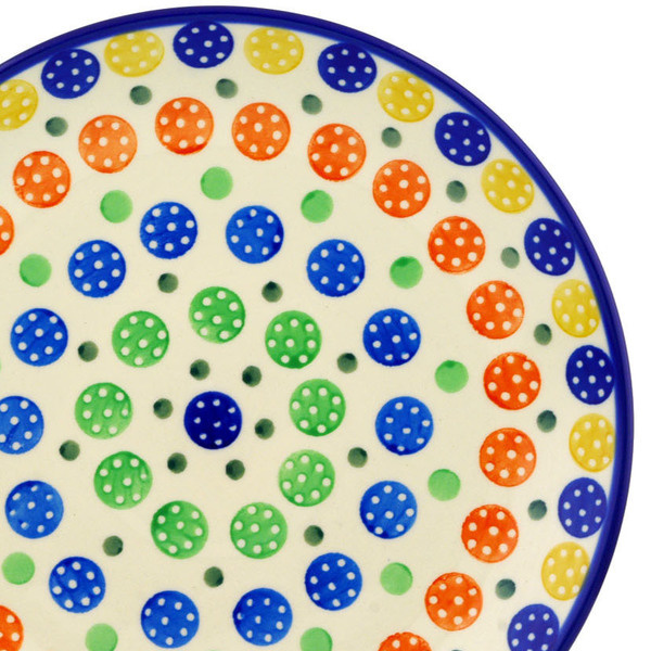 This polish pottery platter with handles (item number H9646E) is made by talented artisans from Poland. It is 1.2" high and measures 5.7" by 12.6". The weight of this platter with handles is 1.69 lbs.