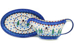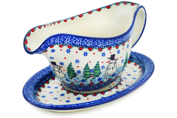 Unikat (Signature) gravy boat with saucer, which means that it has been hand painted with both sponges and brushes and it