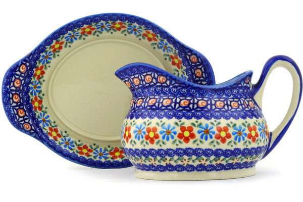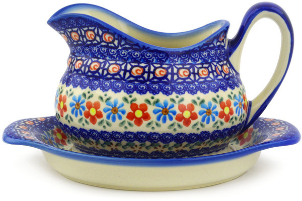 This polish pottery gravy boat with saucer (item number H7570F)