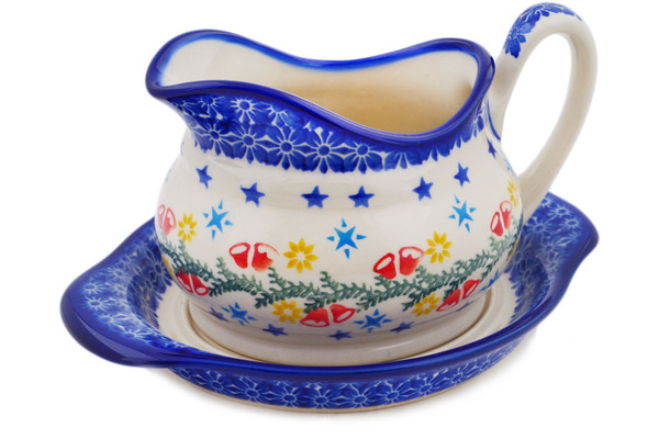 This polish pottery gravy boat with saucer (item number H4102Q)