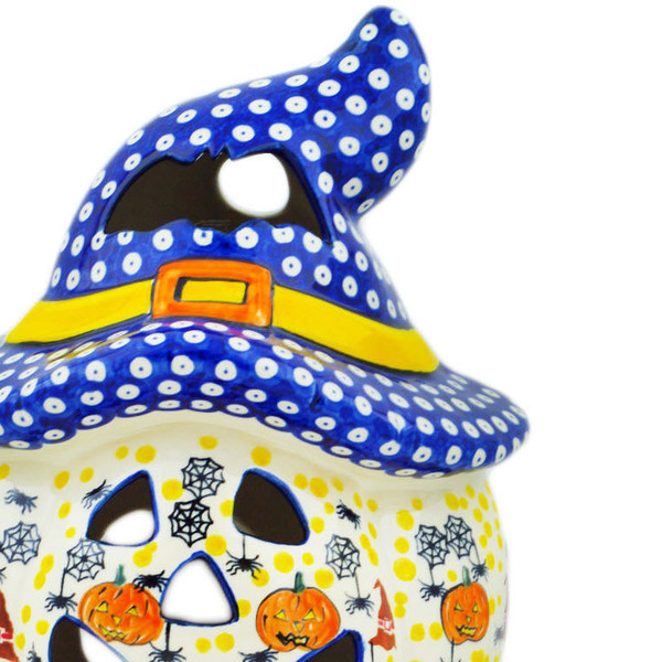 This polish pottery jack o lantern candle holder (item number H6405M)