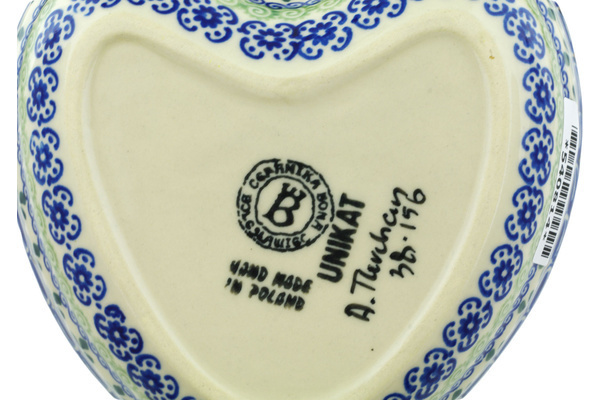 Unikat (Signature) heart shaped bowl, which means that it has been hand painted with both sponges and brushes and it