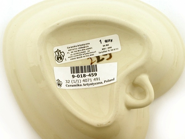 This polish pottery heart shaped bowl (item number H2669A)