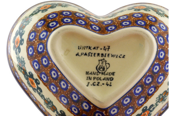 Unikat (Signature) heart shaped bowl, which means that it has been hand painted with both sponges and brushes and it