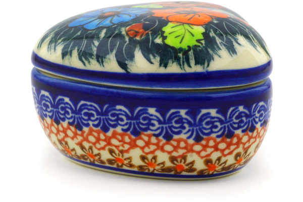 Unikat (Signature) heart shaped jar, which means that it has been hand painted with both sponges and brushes and it