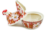 This polish pottery hen shaped jar (item number H2109N)