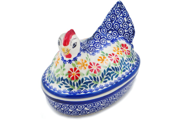 This Polish pottery hen shaped jar is currently out of stock in our Texas warehouse. However, we can special order it from Boleslawiec if you're willing to wait 6-12 months.