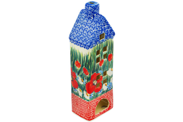 Unikat (Signature) house shaped candle holder, which means that it has been hand painted with both sponges and brushes and it