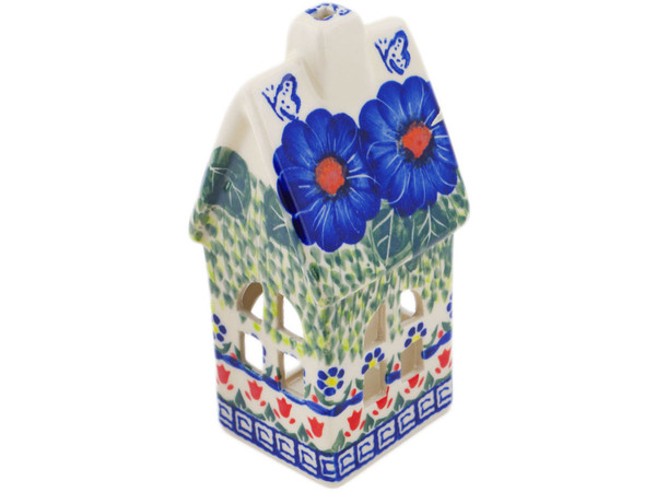 This polish pottery house shaped candle holder (item number H3582Q)