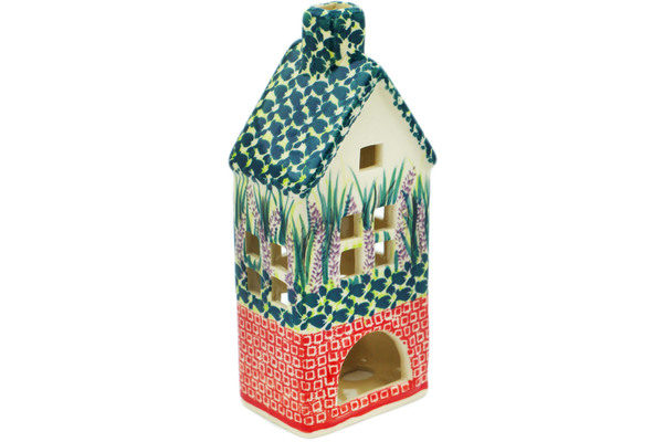Unikat (Signature) house shaped candle holder, which means that it has been hand painted with both sponges and brushes and it