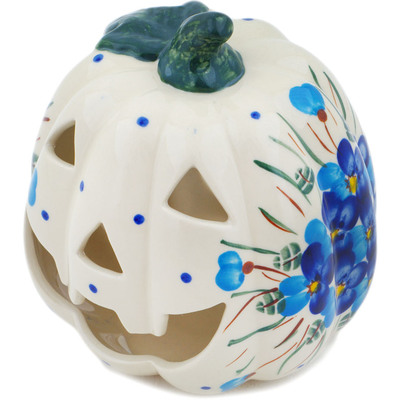 This polish pottery jack o lantern candle holder (item number H6835O) is made by talented artisans from Poland. It is 6" high and measures 4.9" by 5.4". The weight of this jack o lantern candle holder is 1.26 lbs.