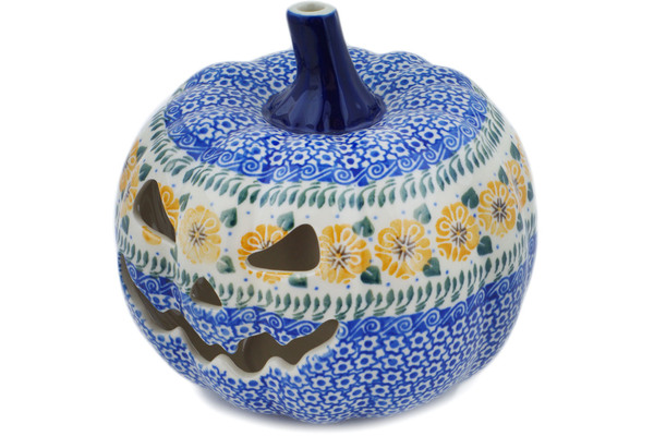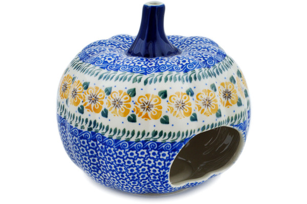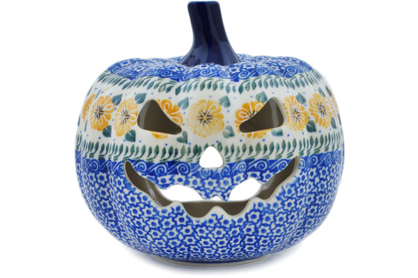 This polish pottery jack o lantern candle holder (item number H9492N)