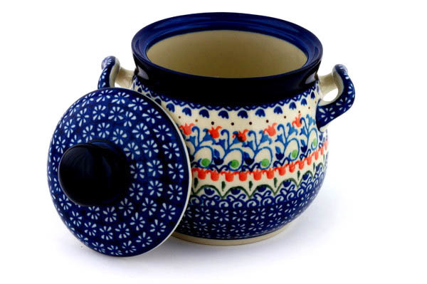 This polish pottery jar with lid and handles (item number H8115F)