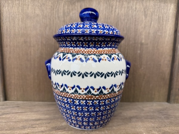 We currently have 3 pcs of this polish pottery jar with lid and handles available from our Texas warehouse.