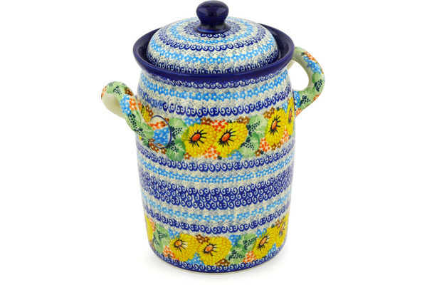 This polish pottery jar with lid and handles (item number H6248D)
