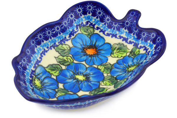 Unikat (Signature) leaf shaped bowl, which means that it has been hand painted with both sponges and brushes and it