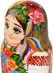This wood nesting dolls (item number H4767M) is made by talented artisans from Ukraine. It is 2.5" high and measures 1.3" by 1.3". The weight of this nesting dolls is 0.03 lbs.
