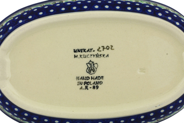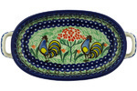 Unikat (Signature) oval baker with handles, which means that it has been hand painted with both sponges and brushes and it