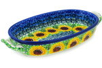 Unikat (Signature) oval baker with handles, which means that it has been hand painted with both sponges and brushes and it