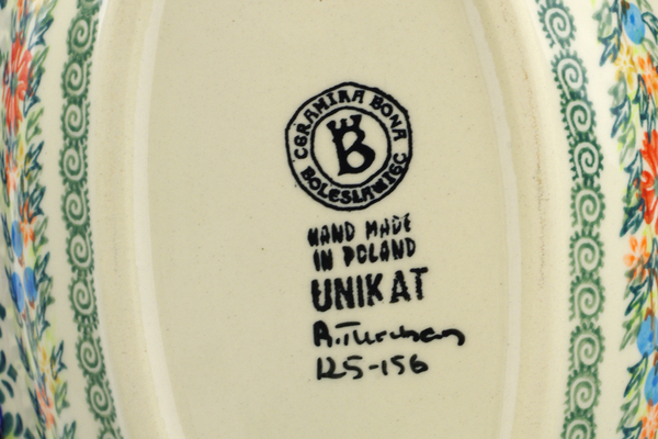 Unikat (Signature) oval bowl, which means that it has been hand painted with both sponges and brushes and it