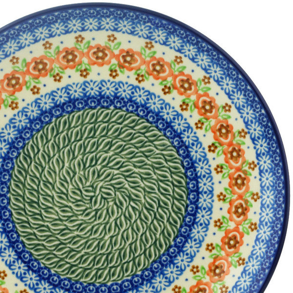 This polish pottery cup with saucer (item number H2608H) is made by talented artisans from Poland. It is 3" high and measures 5.5" by 5.5". It holds 4 ounces of fluid. The weight of this cup with saucer is 0.81 lbs.