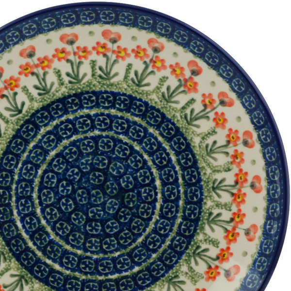 This polish pottery plate (item number H0022B) is made by talented artisans from Poland. It is 1.4" high and measures 10.5" by 10.5". The weight of this plate is 2.19 lbs.