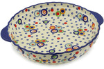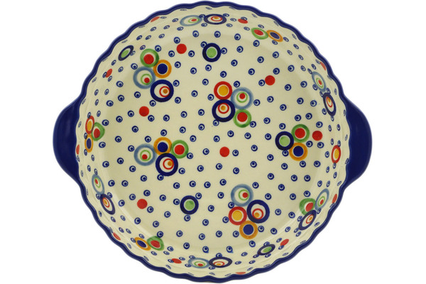 This polish pottery pie dish fluted with handles (item number H9507J)