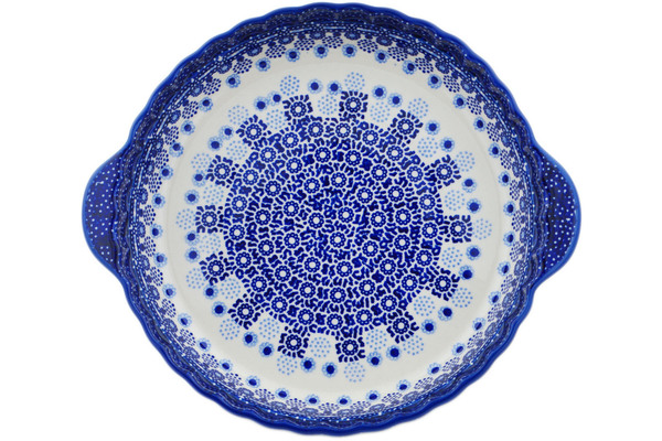 This polish pottery pie dish fluted with handles (item number H1892Q)