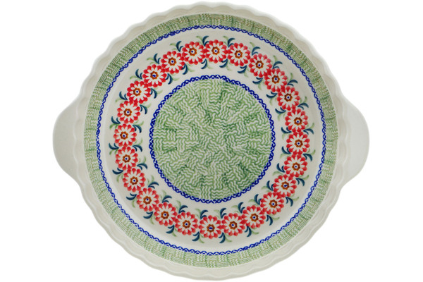 This polish pottery pie dish fluted with handles (item number H6107O)