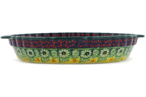 This polish pottery pie dish fluted with handles (item number H9907J)